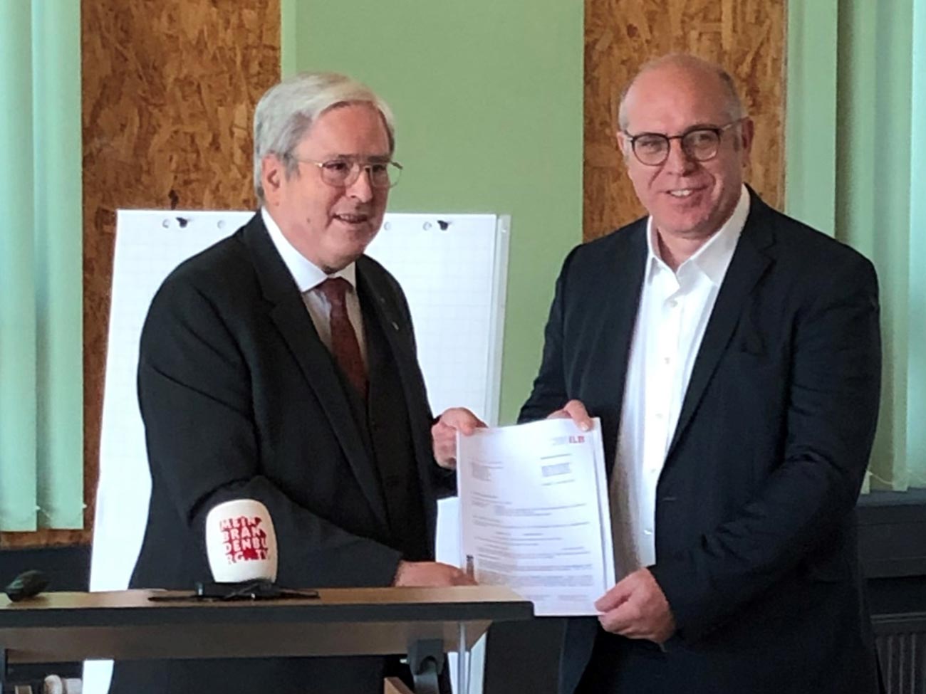 „Da der Umstieg auf klimafreundliche Antriebstechnologien wie Wasserstoff für uns leider mit erheblichen Kosten verbunden ist, sind wir sehr dankbar, dass uns das Land Brandenburg hier unterstützt“ resümierte BBG-Geschäftsführer Frank Wruck im Rahmen der Übergabe.