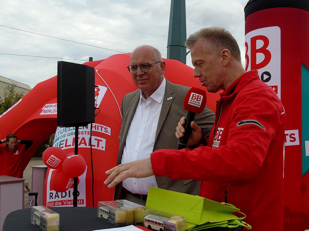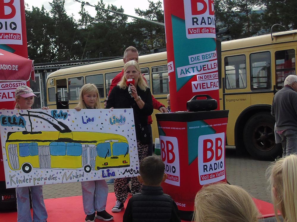 Mit viel Charme und Witz führte Moderator Jens Hermann von BB RADIO durch den Tag, zu dessen Programm-Highlight auch der über halbstündige Auftritt der Show-Tanzgruppen des SV Motor Eberswalde gehörte. Dass der Wettergott ebenfalls ein O-Bus-Fan ist, unterstrich er damit, dass er die Besucher mit einem spätsommerlichen Sonnentag verwöhnte, der erst zum Abbau nass wurde.