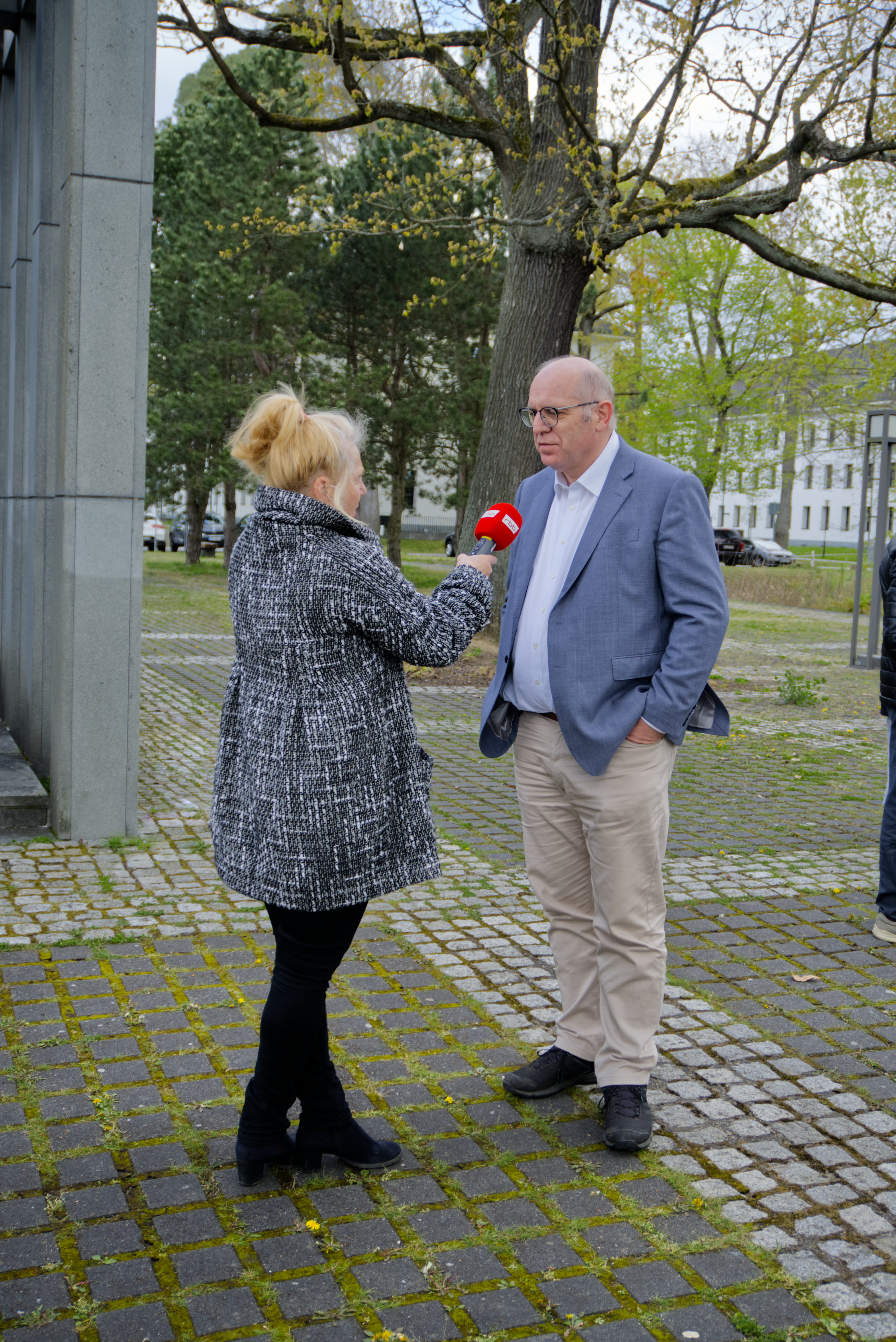 Nach den offiziellen Redebeiträgen kommt nun der technische Leiter der BBG, Ulf Raschke, zu Wort. Geduldig erklärt er die Neuerungen der O-Busse und beantwortet alle Fragen. Als alle Fragen geklärt sind, startet mit allen Beteiligten die offiziellen „Jungfernfernfahrt“ zum Marktplatz Eberswalde und wieder zurück ins Landesbehördenzentrum.