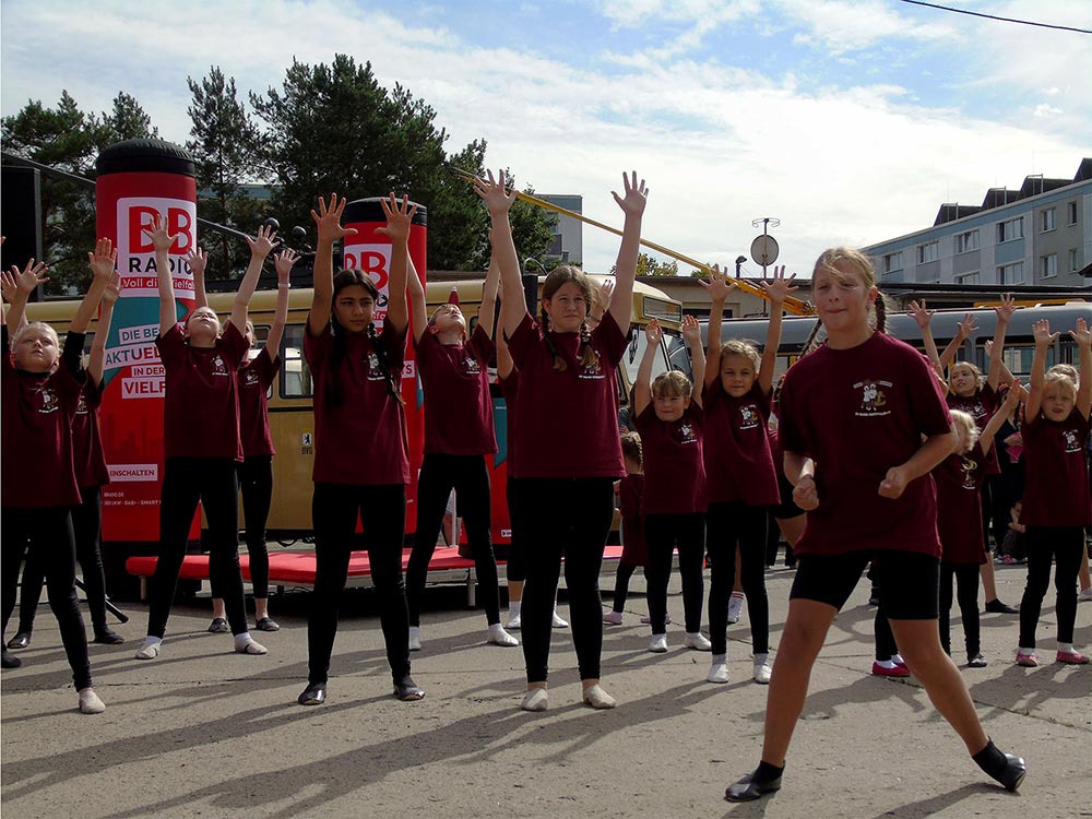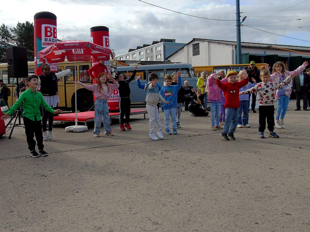 Mit viel Charme und Witz führte Moderator Jens Hermann von BB RADIO durch den Tag, zu dessen Programm-Highlight auch der über halbstündige Auftritt der Show-Tanzgruppen des SV Motor Eberswalde gehörte. Dass der Wettergott ebenfalls ein O-Bus-Fan ist, unterstrich er damit, dass er die Besucher mit einem spätsommerlichen Sonnentag verwöhnte, der erst zum Abbau nass wurde.