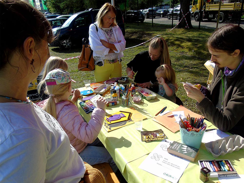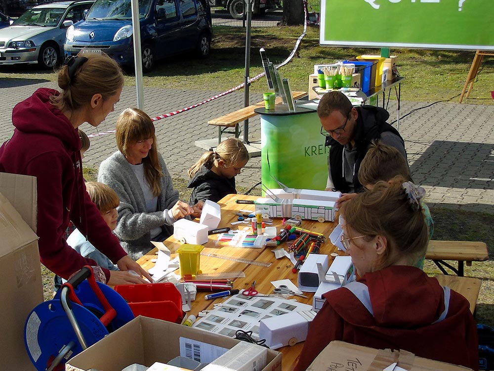 Dicht umlagert waren stets die Angebote des Kinderprogramms: Kreativität war gefragt beim Bauen von O-Bus-Modellen aus Getränkekartons (Umweltbildung der Kreiswerke Barnim), bei der Gestaltung der Naturschutzeule (Haus der Naturpflege Bad Freienwalde) und bei unserem Malwettbewerb "So sieht der O-Bus der Zukunft aus". Die Kindereisenbahn des Verkehrsverbunds Berlin-Brandenburg (VBB) lud zu Rundfahrten, unsere Hüpfburg zum Herumtoben ein. Unterhaltung boten die Vorstellungen des Kasper Theaters Rixdorf, das Kinderparadies Nordend glänzte mit Glitzer-Tattoos und verschönerte das ein oder andere Gesicht nicht nur der ganz Kleinen.